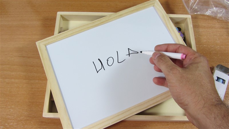 El siguiente producto puede ser ideal para los peques de la casa, se trata de una caja de madera con piezas imantadas y una tapa con dos lados, para poder utilizarla como pizarra y otra parte blanca para dibujar.