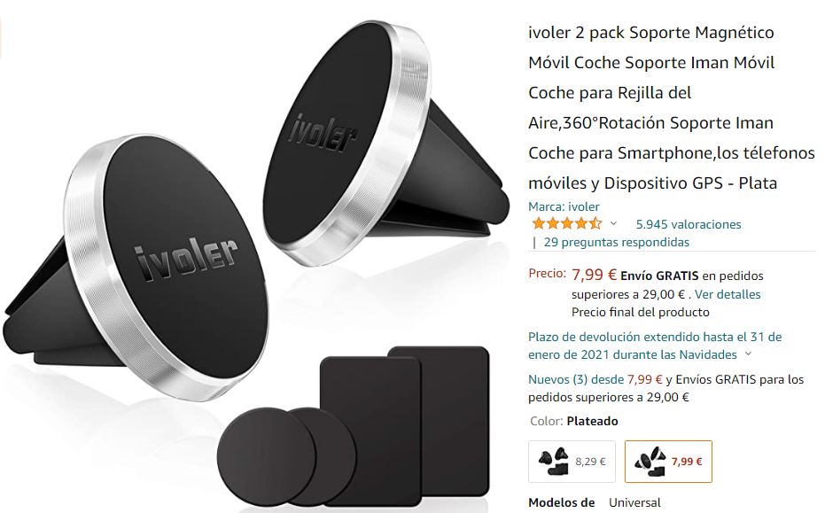 Actualmente este modelo no esta disponible en Amazon, costaba 9,99€, como alternativas encontramos diversos modelos similares, los siguientes son aun mas economicos, costando el pack de 2 soportes 7,99€
