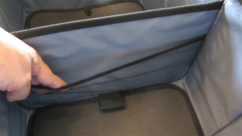 Es plegable y podemos llevarlo cómodamente plegado, al desplegarlo tiene dos piezas que actúan de fondo de los compartimentos que lo hace bastante rígido, tiene una base antideslizante que evitara que se mueva además podemos anclarlo con algún tirador mediante les argollas que tiene.