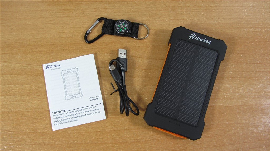 En la caja encontramos el powerbank, un cable de cargar y un enganche con brújula para transportarlo cómodamente.