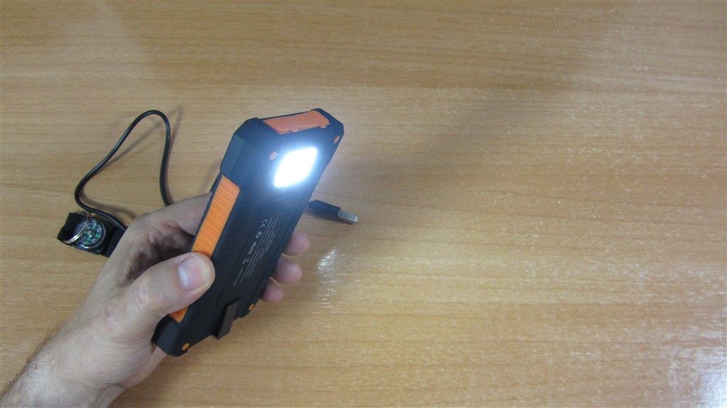 Dispone de un botón para comprobar al carga o encender la linterna, si encendemos la luz led y volvemos a pulsar se activa el modo SoS para informar con señal lumínica.