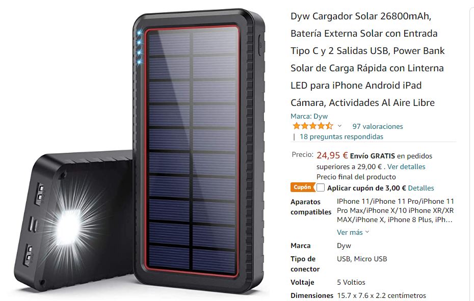 Continuamos con un nuevo análisis,en esta ocasion analizamos un powerbank con panel solar para aumentar la autonomía de móviles y tablets.