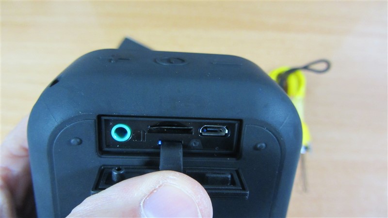 En la parte trasera tiene ocultos el conector de audio, el microusb y la ranura para tarjetas microsd, de esta forma no se mojaran al estar cerradas con tapa de goma.