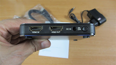 En la parte trasera encontramos los conectores HDMI de entrada y salida, conector de alimentación y el botón de encendido.