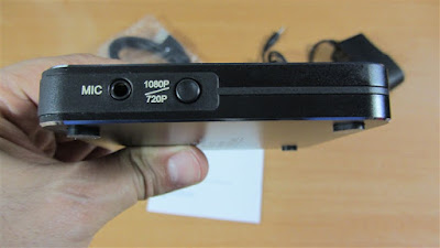 En el lateral derecho tenemos un conector minijack para conectar un micro y un botón para seleccionar el tipo de grabación en 720 o 1080P.