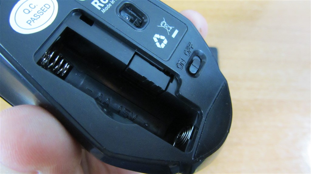 El ratón tiene un color negro con la rueda en color naranja, al quitar la tapa comprobamos que funciona con una pila AA no incluida, justo al lado de la pila esta el receptor usb que tendremos que sacar y conectar al pc para que se sincronice de forma automática.
