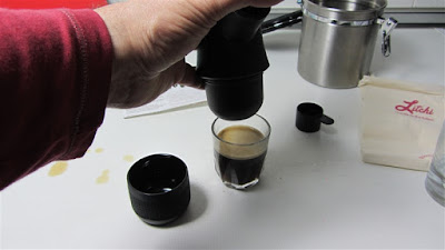 Después de probar un modelo de cafetera similiar pedí el siguiente modelo en una oferta flash, se trata de una cafetera portátil manual con el que podremos hacer café casi como el del bar.