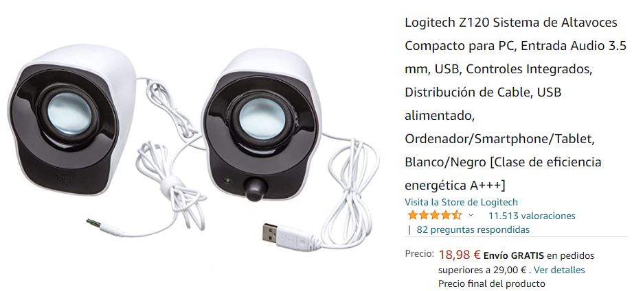 Como alternativa podemos encontrar diversos altavoces alimentandos por usb, los Logitech Z120 pueden ser una buena opcion, estan disponibles por 18,98€ con envio gratis