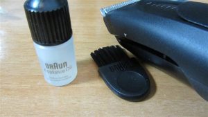 En la caja encontramos el cortapelos, un cepillo para limpiarlo, un bote de aceite, el cargador con enchufe europeo y el manual de instrucciones.