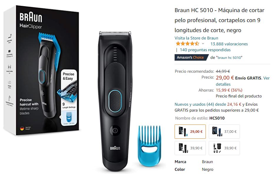 Continuamos con un nuevo análisis de otro producto disponible en Amazon, tras el fracaso del modelo analizado en la anterior entrada he comprado del modelo HC 5010 de Braun, os dejo con el vídeo del producto.