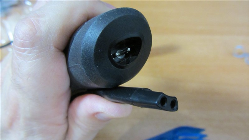 En la base vemos el conector para cargarlo, también podemos utilizarlo conectado a la corriente.