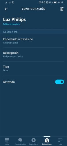 Tras detectarla con Alexa también podremos controlarla por voz, pudiendo encenderla e incluso cambiar el color de la iluminación.