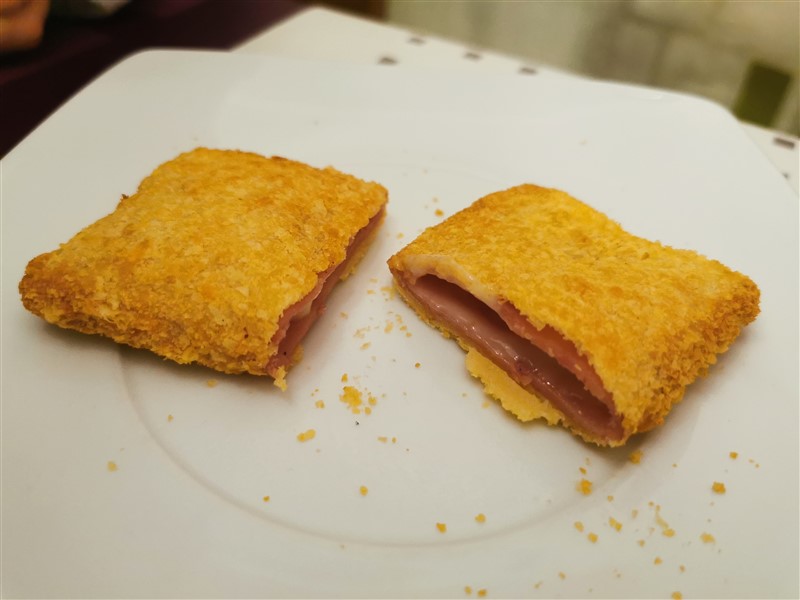 En tercer lugar preparé un San Jacobo (Jamón y queso rebozado con pan rallado), no estaba congelado, le puse un poco de aceite pulverizado y tras estar el tiempo necesario he de reconocer que se quedo perfecto, mucho mas que cuando los frio con aceite que termina absorbiendo el aceite y muy hechos por los bordes, sin duda para este tipo de comida y variantes como croquetas, calamar a la romana, etc puede ser muy útil para no usar tanto el aceite para freír.