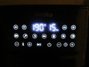 La freidora tiene un panel táctil desde el cual podremos controlar todas sus funciones, al enchufarla a la corriente se iluminara de color rojo el botón de encendido, al pulsarle veremos iluminadas en blanco todas las funciones.