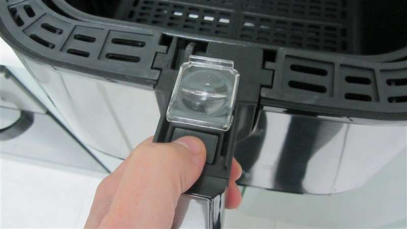 Tiene un asa para extraer la cesta, dispone de un botón de metacrilato transparente para facilitar la extracción.