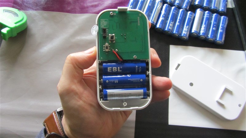 Tras comprobar que tenian la carga correcta las coloque en un sensor de Alarma que utiliza 3 pilas AA, ahora queda ver cuanto tiempo duran.