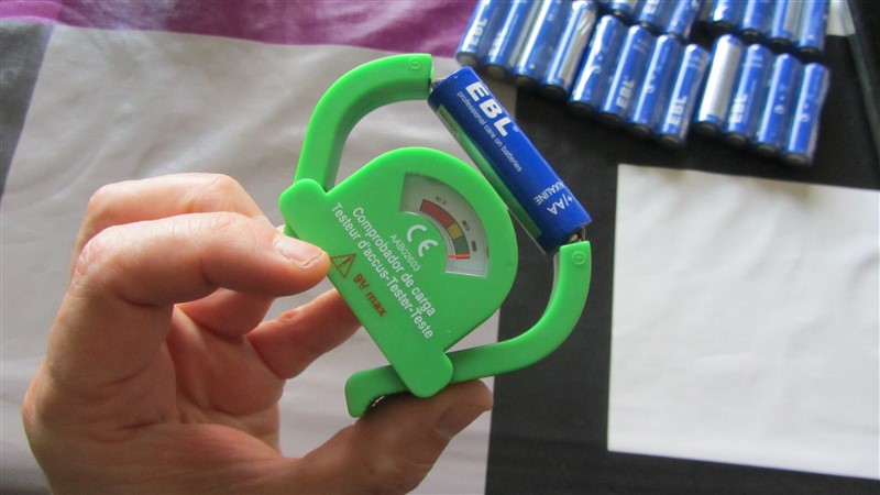 Para comprobar que vienen completamente cargadas utilice un pequeño comprobador para ver la carga, mostrando la carga máxima al colocarlas en el.
