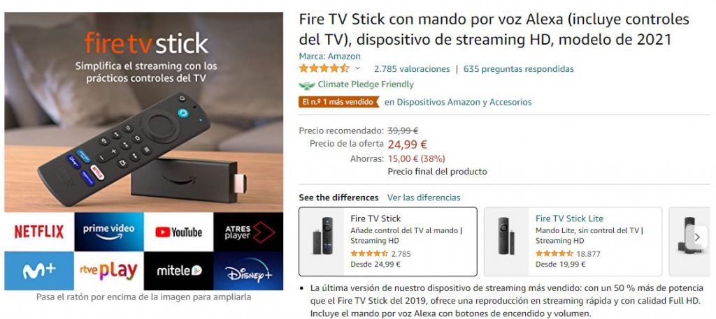 Esta disponible por 24,99€ con un descuento del 38%, un precio bastante interesante para esta dispositivo con un mando muy completo.