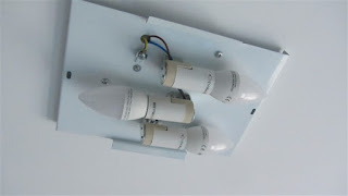Con un taladro hacemos los agujeros colocamos los tacos y atornillamos la base conectando los cables de la luz, una vez atornillada la base y colocadas las bombillas viene la parte que puede ser mas complicada.
