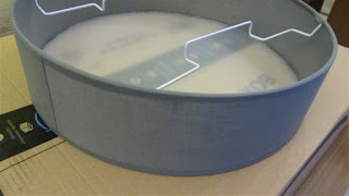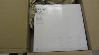 En la caja viene todo lo necesario «excepto las bombillas del tipo e14, las de rosca fina, que tendremos que comprar a parte, necesita 3″, la lampara se divide en 2 partes, el plafón que esta fabricado en plástico semi trasparente y la parte lateral en tela, quizás debería ser mas opaco para que no pasara tanto la luz, las bombillas se ven cuando están encendidas, en una bolsita encontramos los tacos, tornillos y unas fundas para los cables.